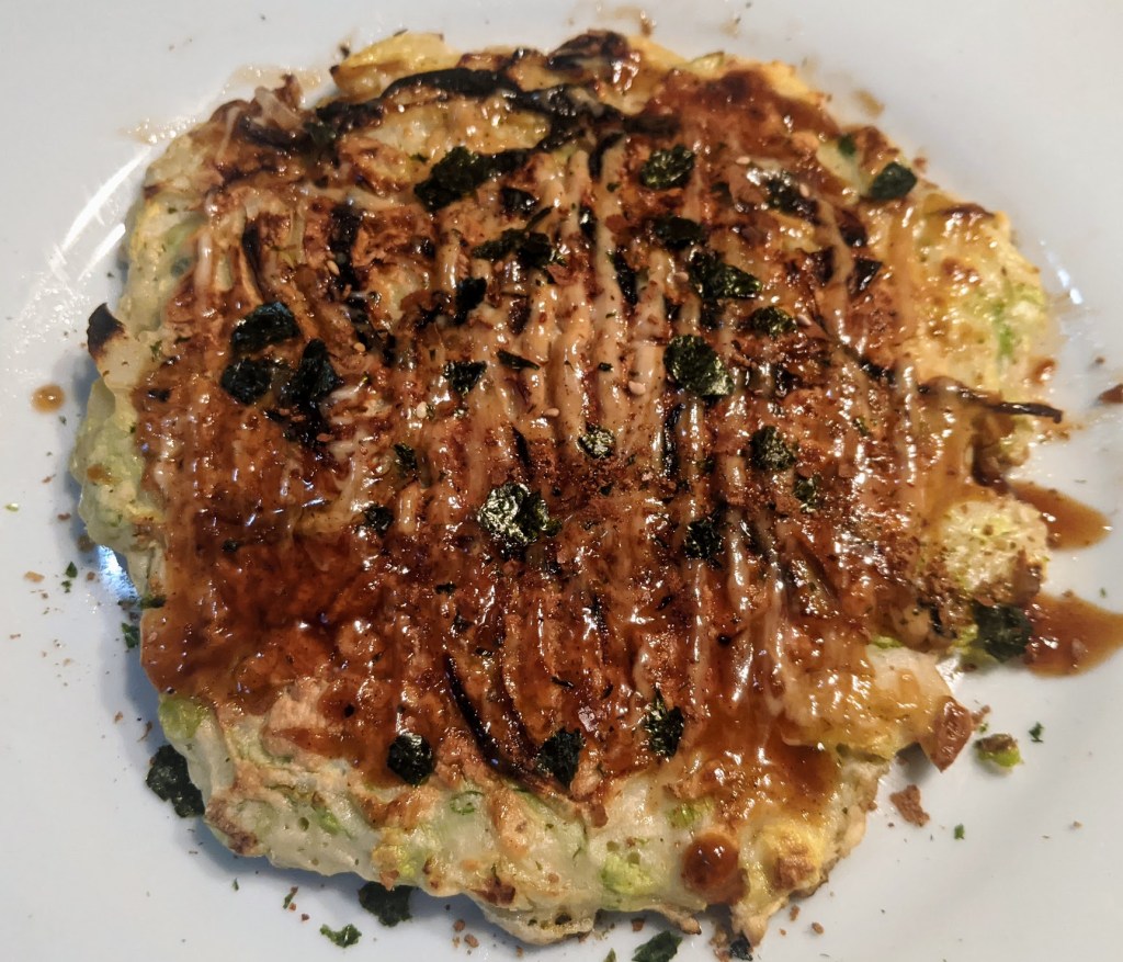 The name comes from “okonomi”, which means “as you like” and “yaki” meaning “cooked”, which means you can put WHATEVER YOU WANT on it and it’s still correct.